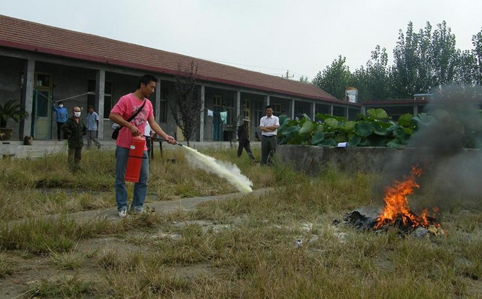 參加此次演練的有生產副總鄭理、技術副總苗海濱、安環(huán)部負責人葛業(yè)成、保溫廠廠長楊圣勇及其他相關工作人員。安環(huán)部主要負責人在現場給大家講解了如何識別滅火器的壓力表指示、如何識別滅火器有無過期等一些消防知識。參加人員依照演練程序,布置演練現場,先示范滅火,再依次操作滅火,成功進行了消防演練。